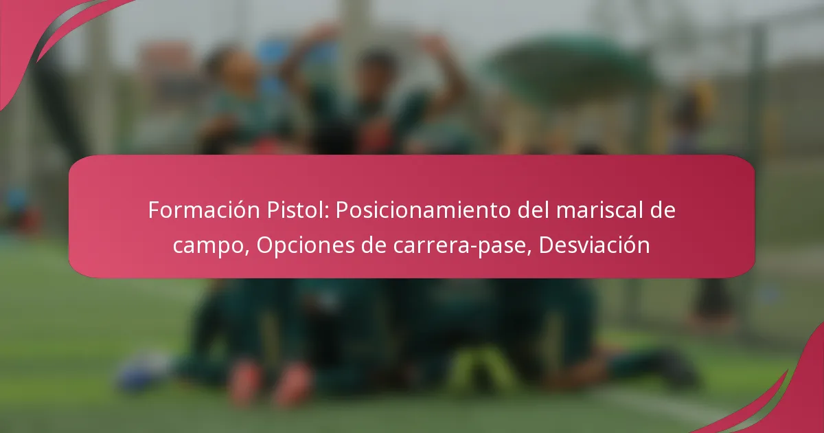La formación Pistol combina elementos de la formación tradicional de escopeta y la formación I. En esta configuración, el mariscal de campo se sitúa aproximadamente a cuatro o cinco metros detrás del centro, con un corredor posicionado directamente detrás de él. Este arreglo crea una opción dinámica tanto para jugadas de carrera como de pase.